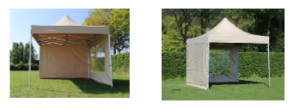 - Tenten zijn bestand tegen lichte regen, maar dienen bij hevige wind extra verankert of tijdelijk afgebroken te worden.
